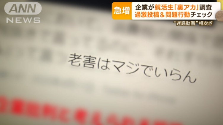 企業の間で学生が匿名でSNSに投稿する、いわゆる「裏アカ」を調査する動きが広まっています。