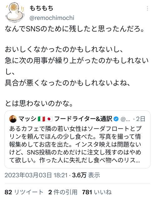 不味くて残すのだって育ち悪いし具合が悪いならそもそもそも外出てんじゃねぇよカス