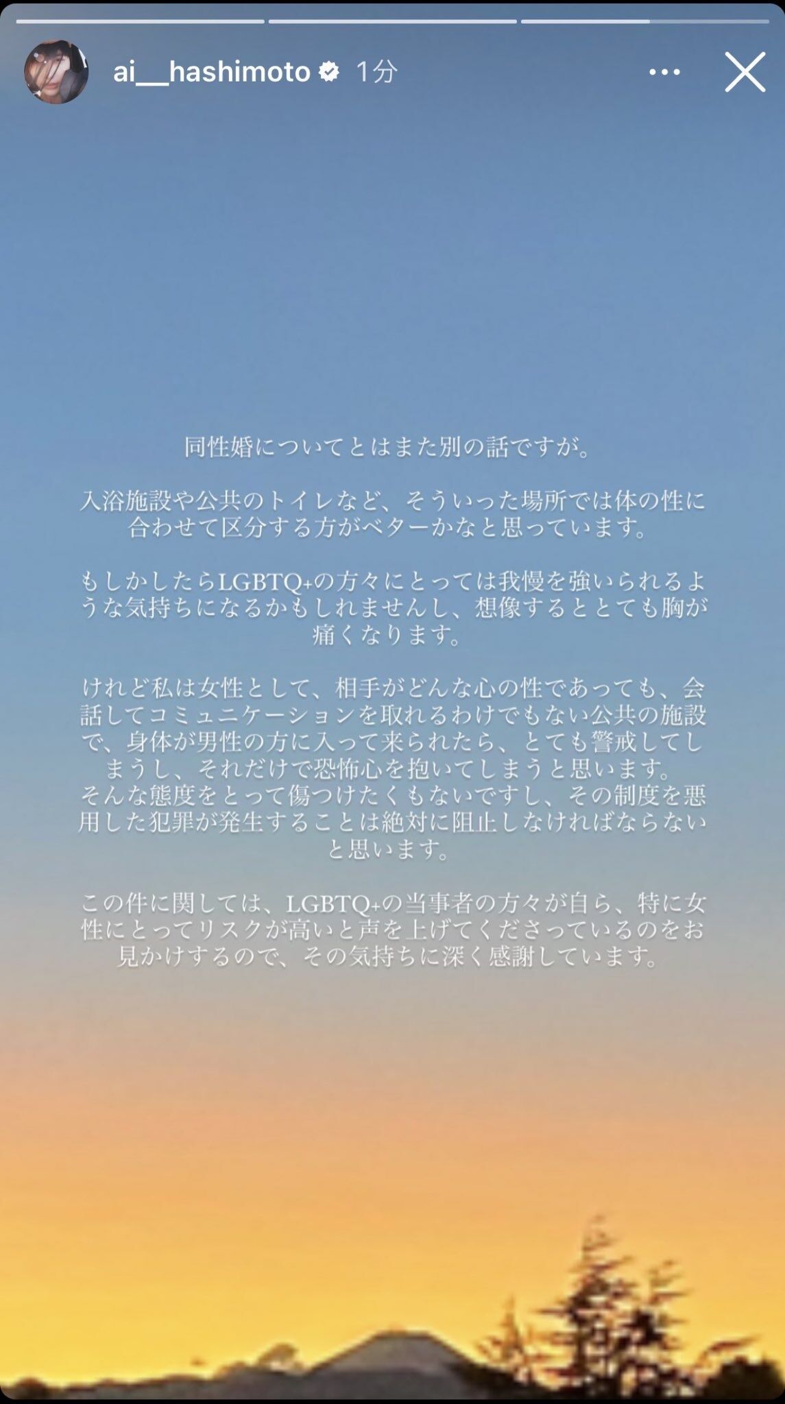 女優「女子トイレや女子風呂に身体男性のトランス女性が来ると恐怖心」→トランスヘイトだと批判されて謝罪 2023/3/6 哲学ニュースnwk 1: ラルテグラビルカリウム(東京都) [CN] 2023/03/05(日) 21:46:31.28 ID:pBzvSZg00● BE:633829778-2BP(2000) 宮迫の焼肉屋に来たで!『水に浮く肉登場wwwwwwwwww』 ↓批判が殺到して謝罪 続きを読む Source: 哲学ニュースnwk