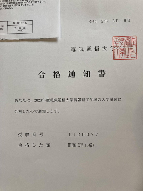 合格した!!!!2 風吹けば名無し 2023/03/07(火) 21:50:49.95 ID:2SPLzbM30