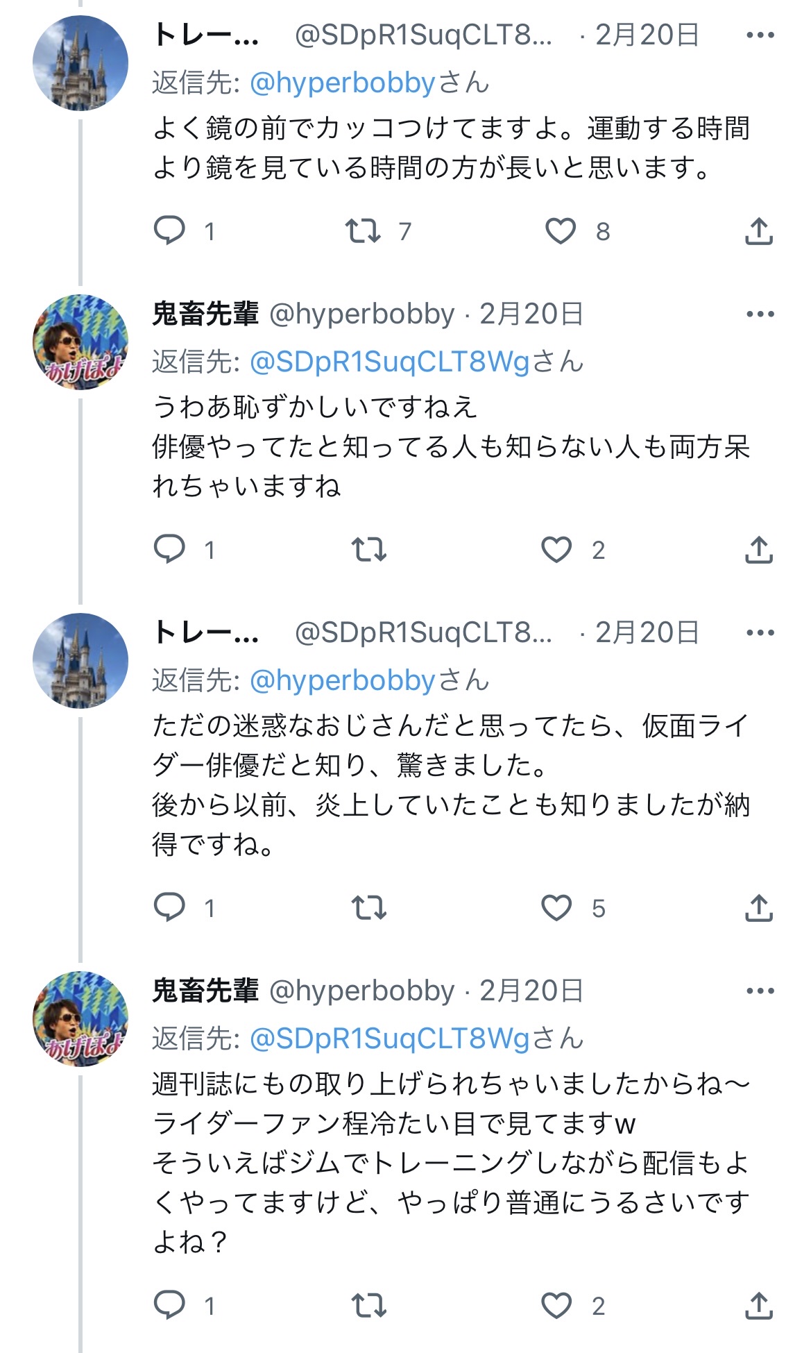 ・過去にはジムでトレーニングしながら配信を行なっていたことがあり、声がうるさく周囲から迷惑がられていた