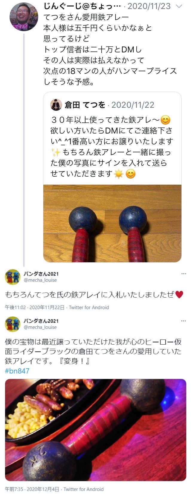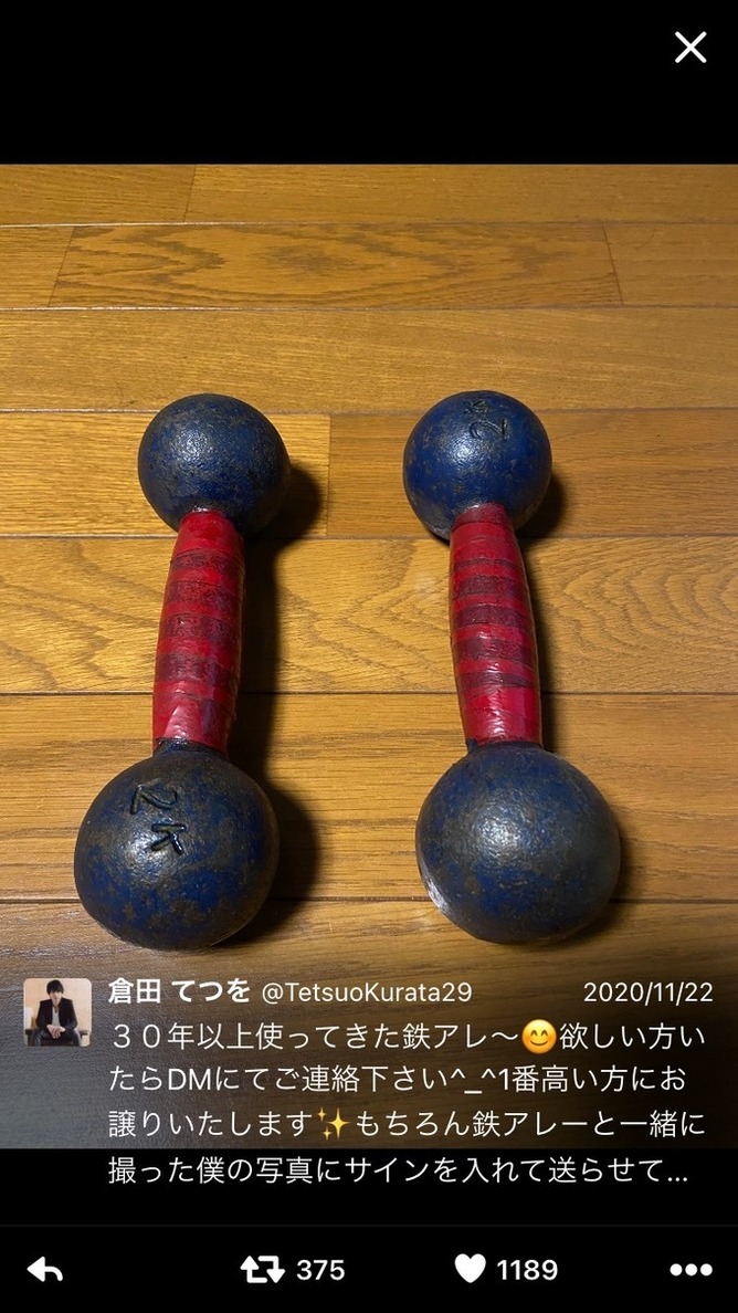 2020年11月、自身の30年愛用してきた鉄アレイをサイン入りの写真付きで高額でファンに買わせる(18万円で落札されたという)