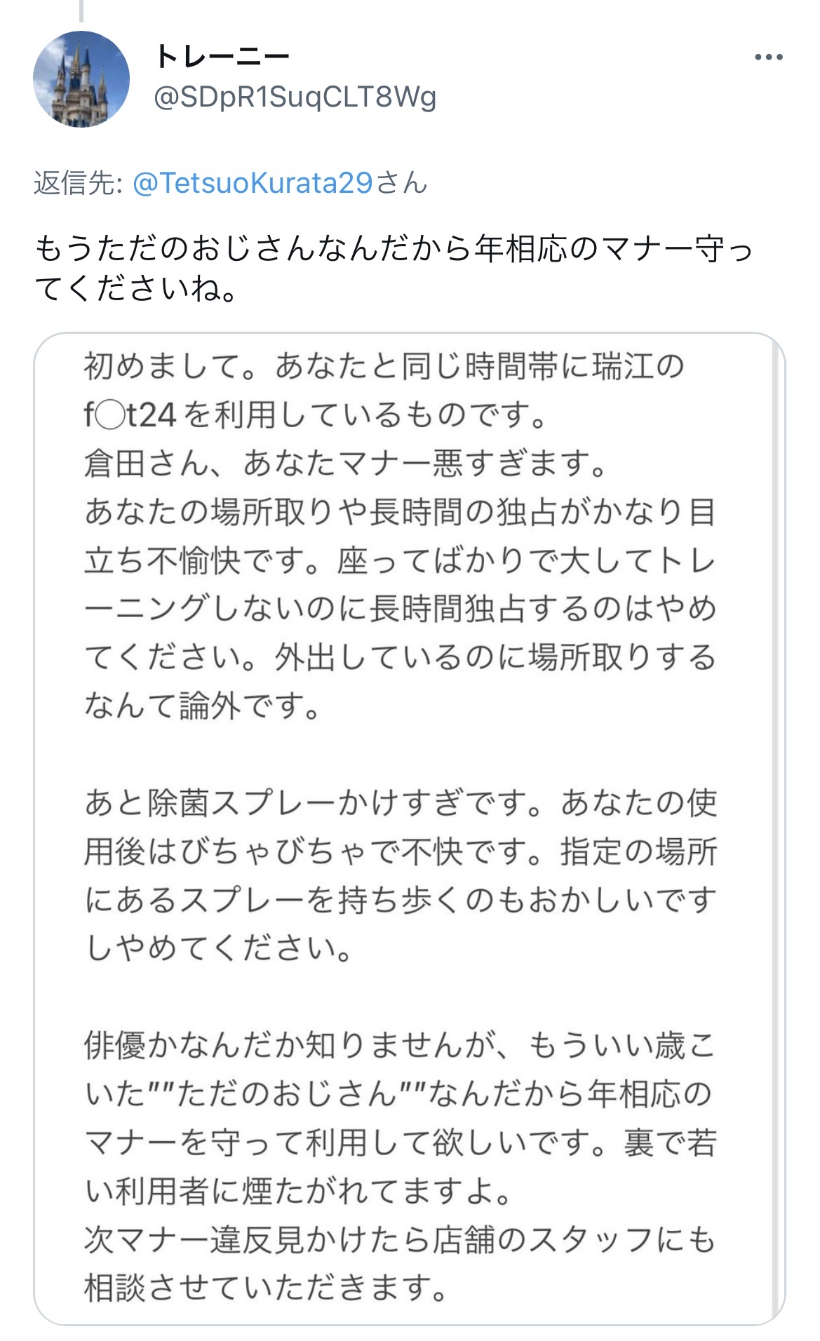 なお倉田の逆鱗に触れたのか案の定ブロックされてしまった模様