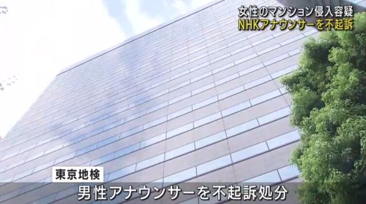 NHKアナウンサー不起訴 知人女性マンション侵入容疑
