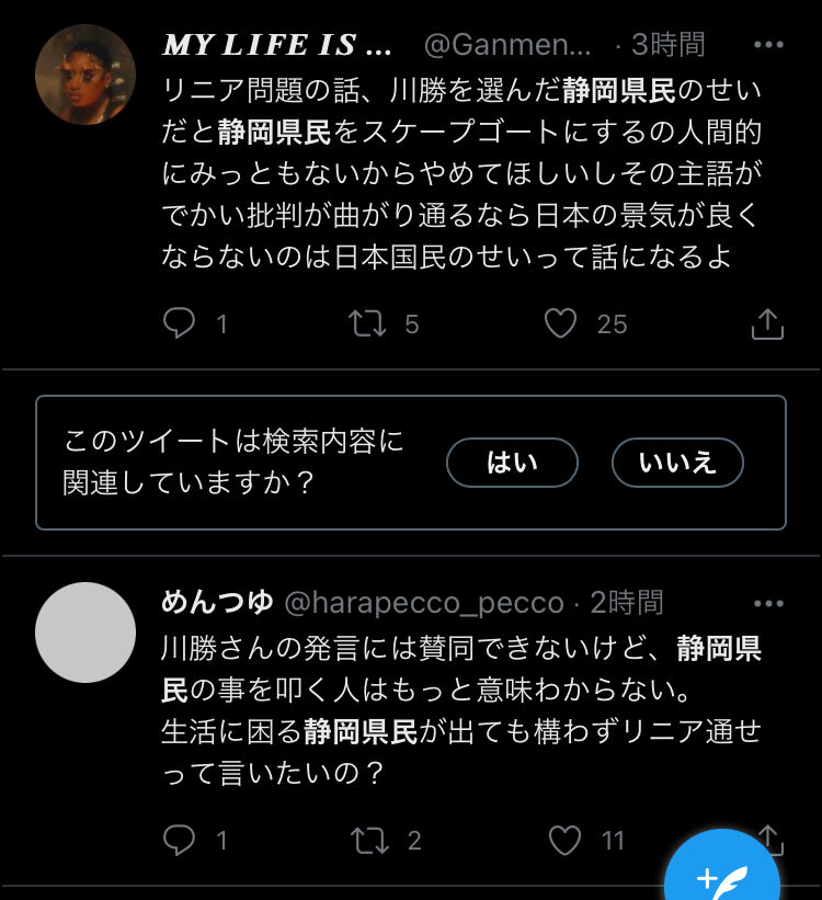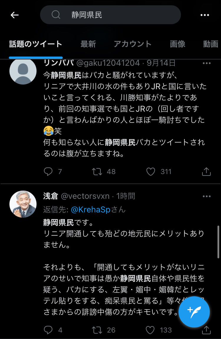 静岡県民、リニアに徹底抗戦「他県人に何を言われようが静岡県民の生活を破壊するリニアは絶対通さない」 2023/4/4 哲学ニュースnwk 1: 名無しさん@おーぷん 23/04/04(火) 07:46:56 ID:pYaw 昭和の子供たちが老けすぎな件 続きを読む Source: 哲学ニュースnwk