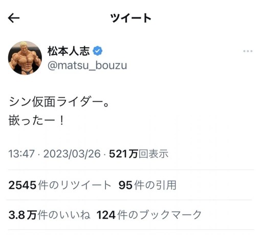 嵌ったー!— 松本人志 (@matsu_bouzu) March 26, 2023