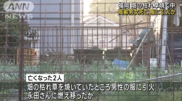 枯れ草焼却の火が燃え移り高齢の男女死亡 福岡・太宰府市