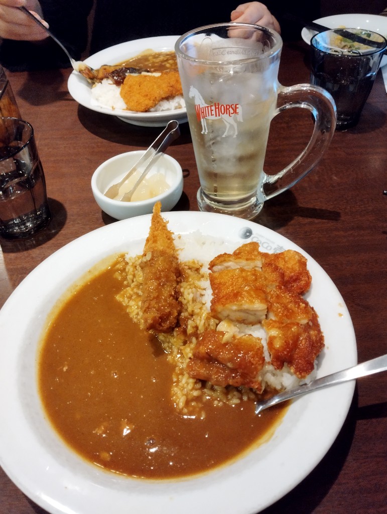 ワイ「ワイはパリパリチキンカレーにエビフライとらっきょう追加で!今日は1辛でいいかな?」