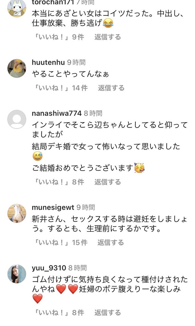 一般男性との結婚と妊娠を公表したフリーアナウンサーの新井恵理那(33)が19日、インスタグラムを更新。「心無い文章」が寄せられたと明かし、コメント欄をクローズしたことを報告した。