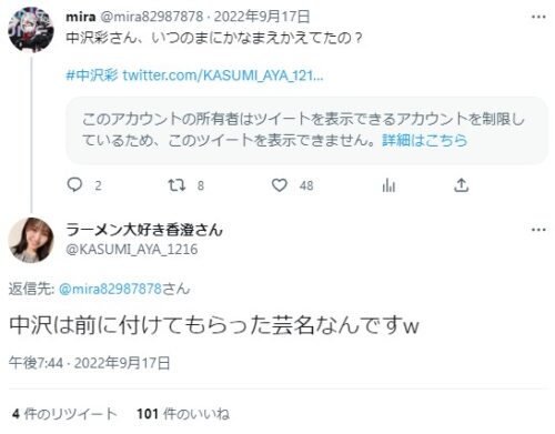 芸名?「香澄あや」ってセクシー女優みたいな名前やな
