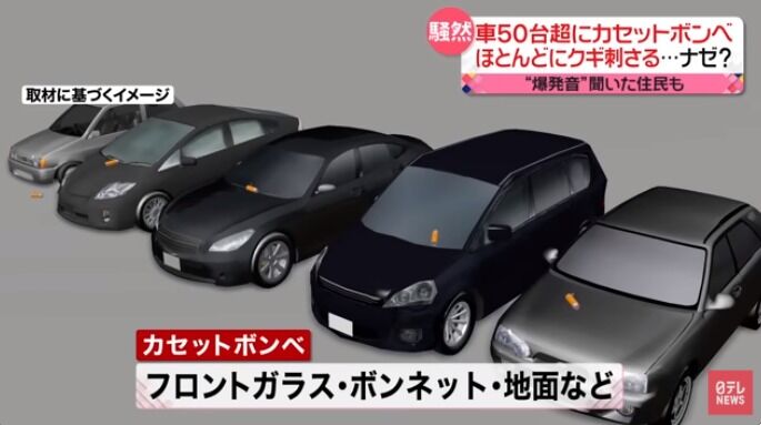 くぎが刺さったカセットボンベが車の上に…被害は50台以上 爆発音も#日テレNEWShttps://t.co/H0TsXUrVot