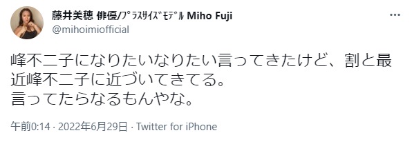 — 藤井美穂 俳優/プラスサイズモデル Miho Fuji (@mihoimiofficial) June 28, 2022