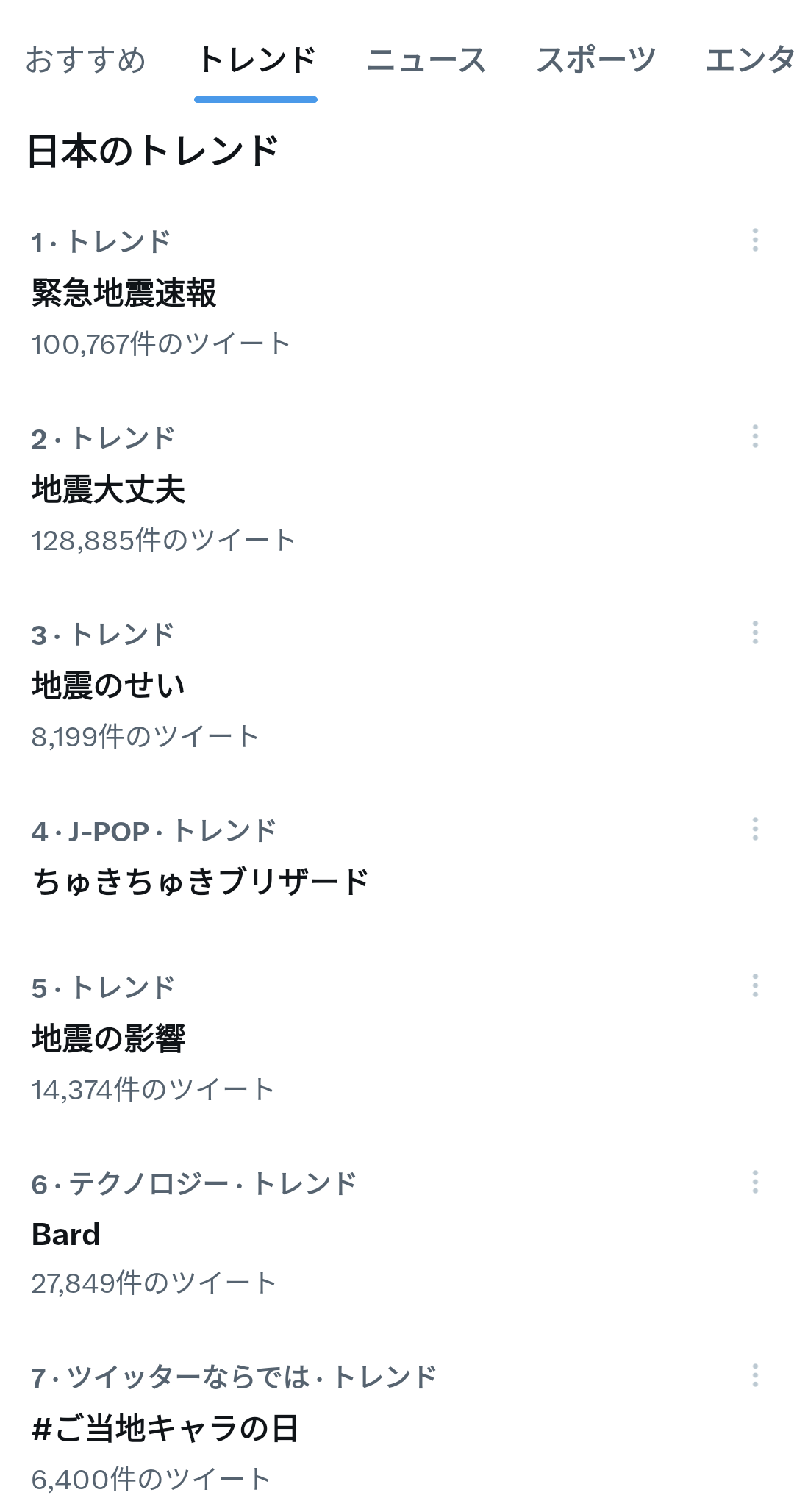 ・「地震のおかげで早く目が覚めた😢」みたいなツイートを書き込む人多数