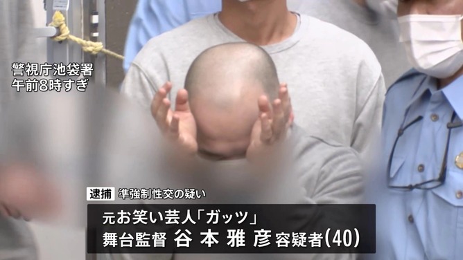 20代女性に睡眠薬を飲ませ、性的暴行を加えた疑いで逮捕されたのは、舞台監督の谷本雅彦容疑者(40)だ。