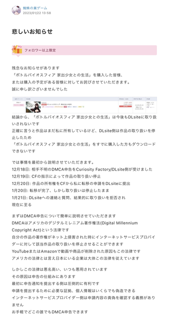 【Dlsite】違法DLユーザーのDMCA申請によって同人ゲームが販売停止になったあげく、無断で海賊版が海外で販売されてしまった件 – Togetter