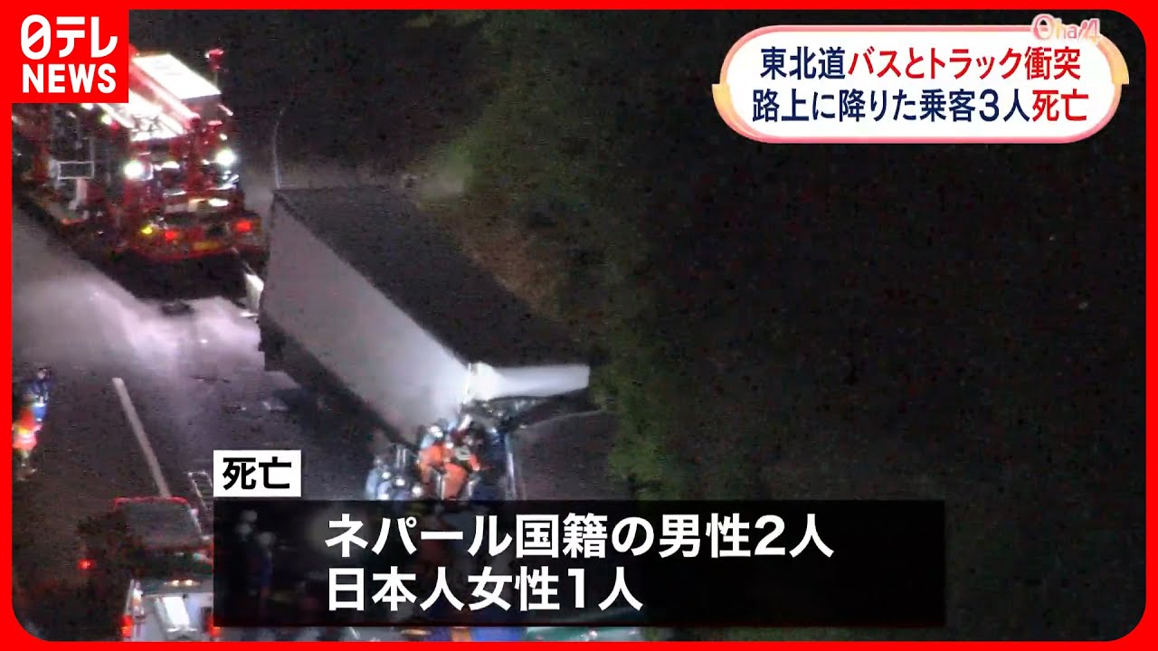 全員が停車中のバスから降り…トラックが追突、路上にいた男女3人はねられ死亡 東北道#日テレNEWShttps://t.co/xUT0kKZXfg