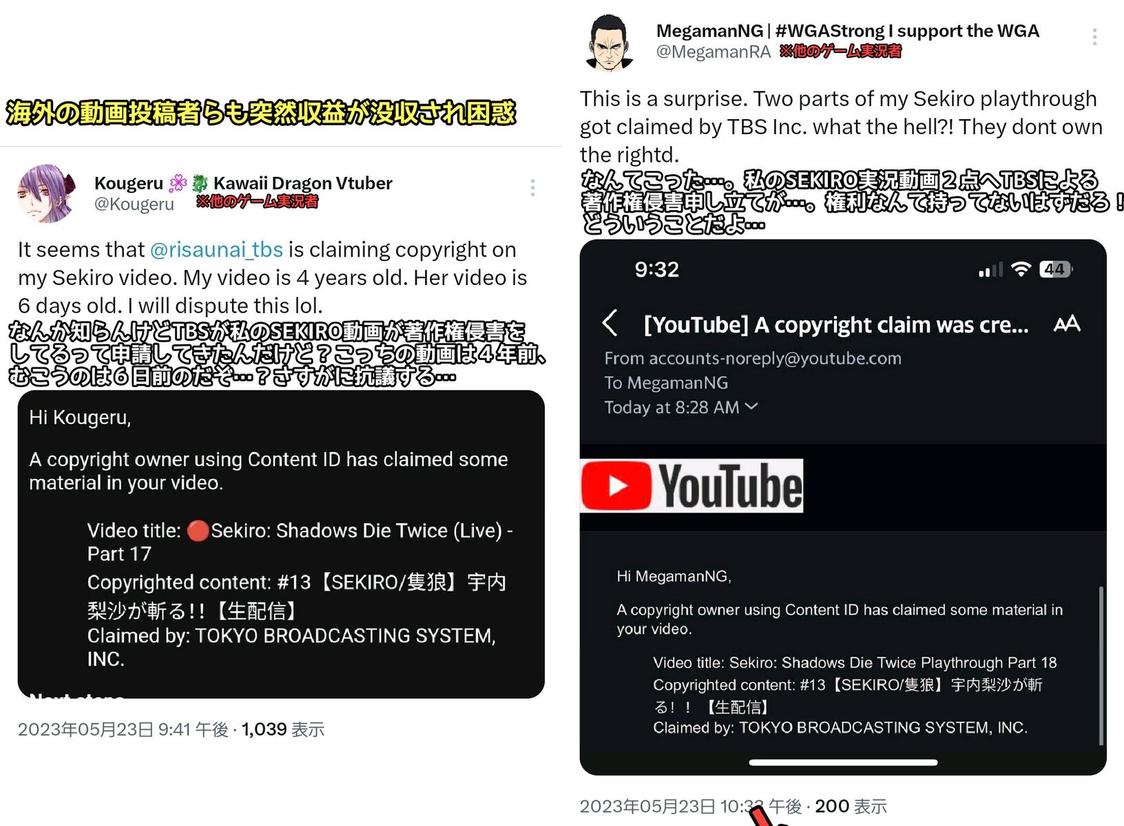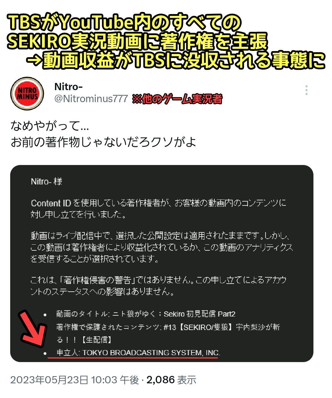 天下のTBS様がお前ら人様の映像パクって収益得てんじゃねーよと著作権違反で通報しまくり収益をかすめ取る自体に