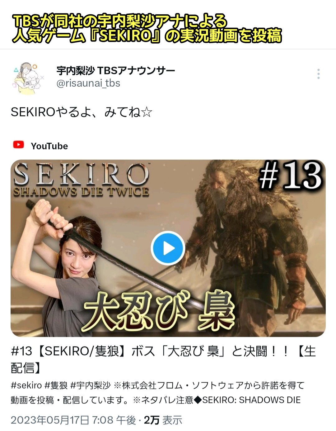 ムービーシーンが流れる動画全てがAIにより女子アナの実況と同一映像を使っている(転載している)と判断される
