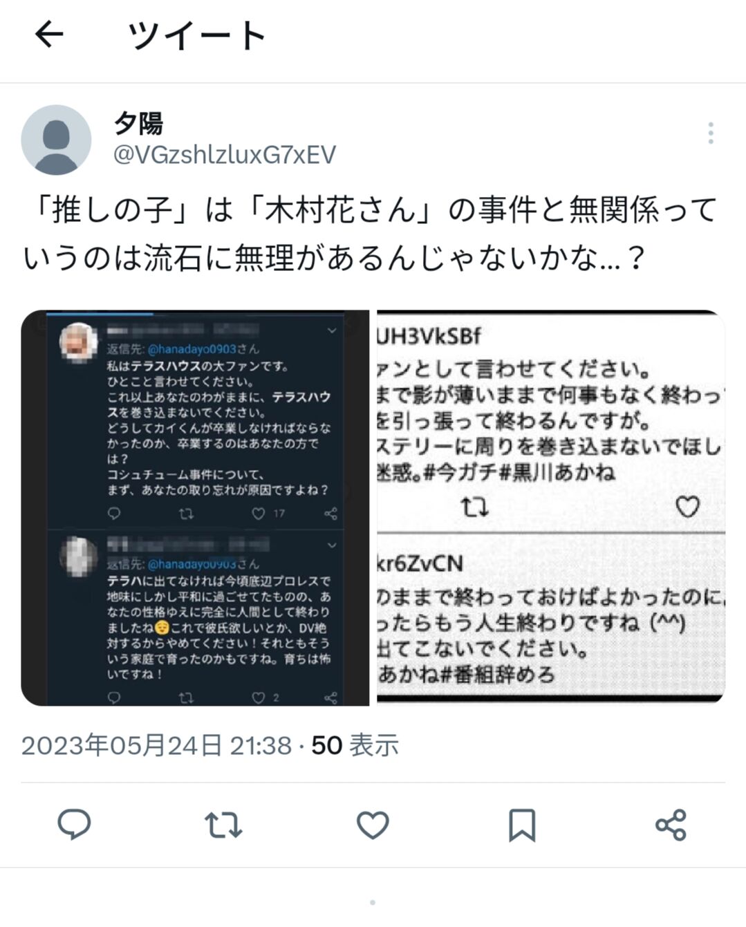 推しの子信者や某インフルエンサーがブチギレしてしまい木村花さんの遺族に誹謗中傷をしてしまう