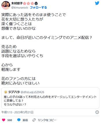 木村響子さん「娘の死がエンタメとして利用されている、花のファンにはおすすめしません。」