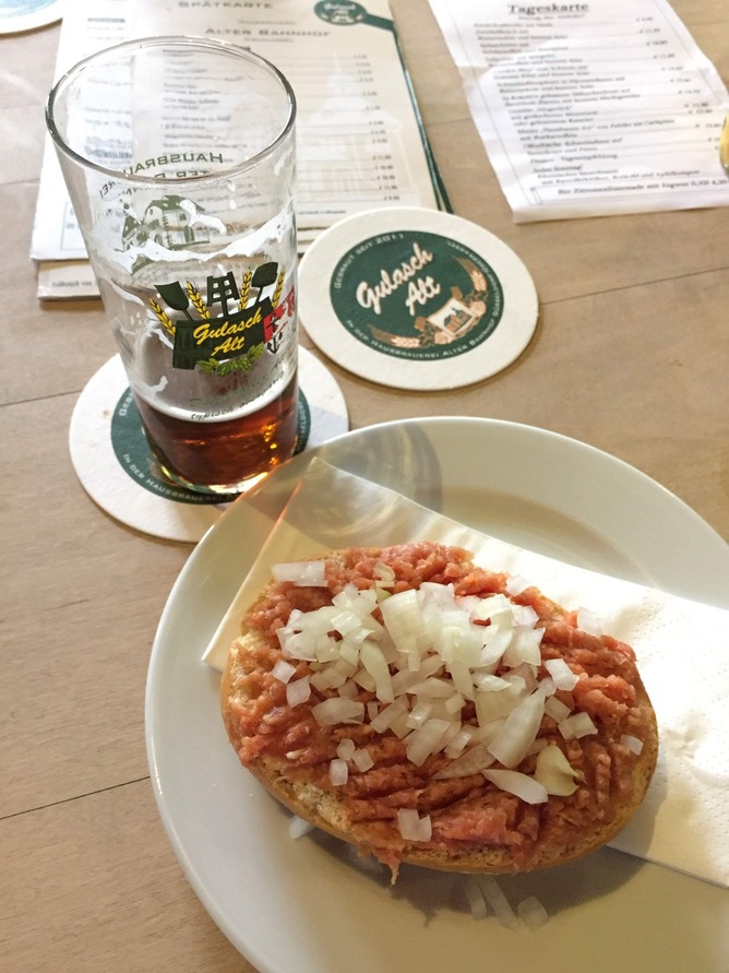 Hackfleisch-Verordnung(ひき肉令)というのがあって、それに従ったひき肉なら生食できるんやで