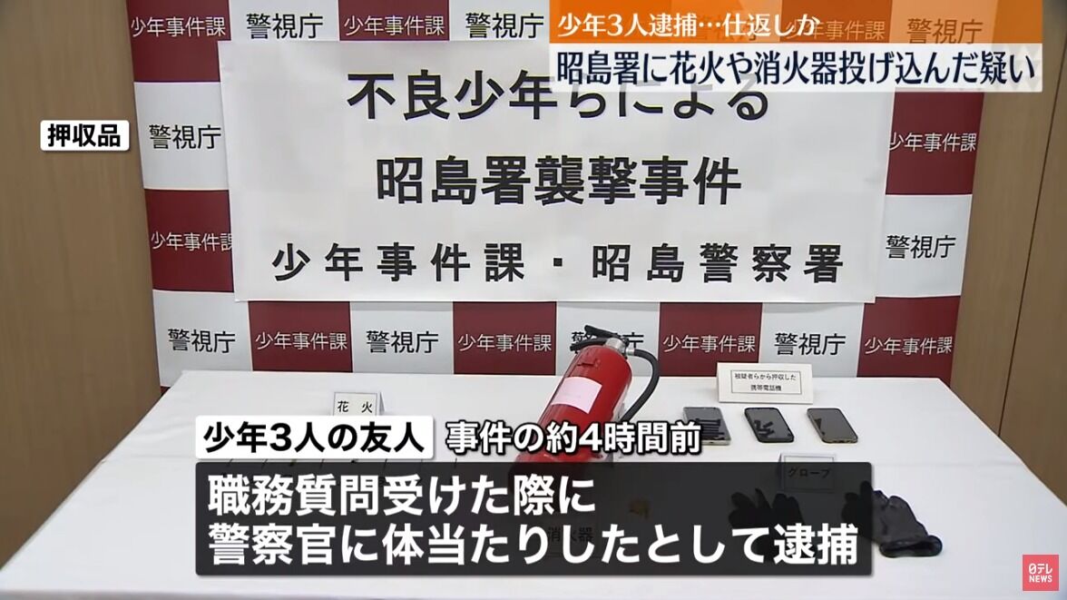 東京・昭島警察署への襲撃で少年3人逮捕 消火器噴射「友人が逮捕された仕返しでやった」 #FNNプライムオンライン https://t.co/uc6nzZnF5y