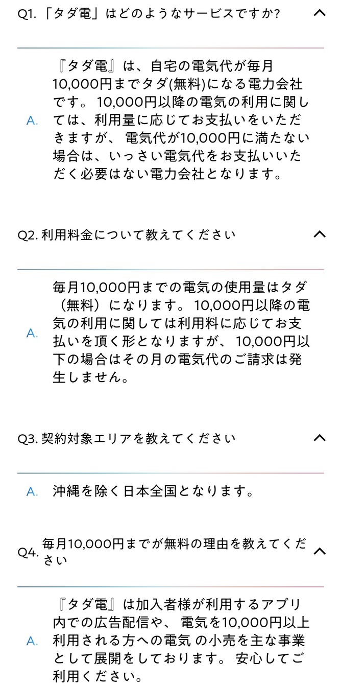 『タダ電』は、加入すると自宅の電気代が毎月10,000円までタダになる電力会社です。