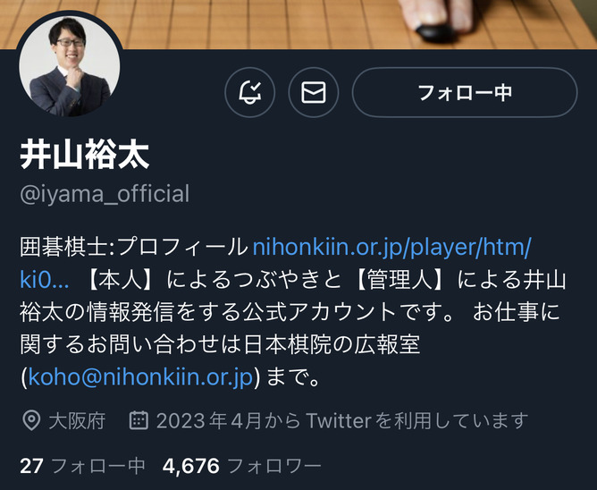 日本囲碁界のトップのフォロワーが5千人にすら満たない模様