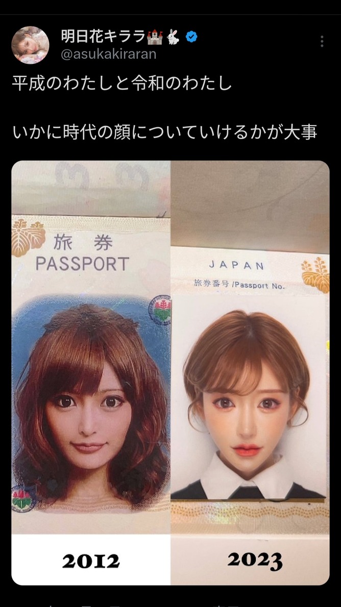 【画像】明日花キララの2012年と現在のパスポート写真wwwwwwwwwwwww