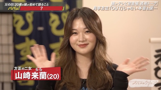 落語家の月亭方正が18日放送の日本テレビ系「おしゃれクリップ」(日曜・午後10時)にゲストとして登場し、次女・山崎来蘭(らら)さんがテレビ初出演した。21歳長女と20歳次女、10歳長男の3児の父である方正。「家族NGやったんです」というが、今回の出演について「もう(娘が)大人なんで、俺が決めることじゃないなって」と本人の意志を尊重したと語った。