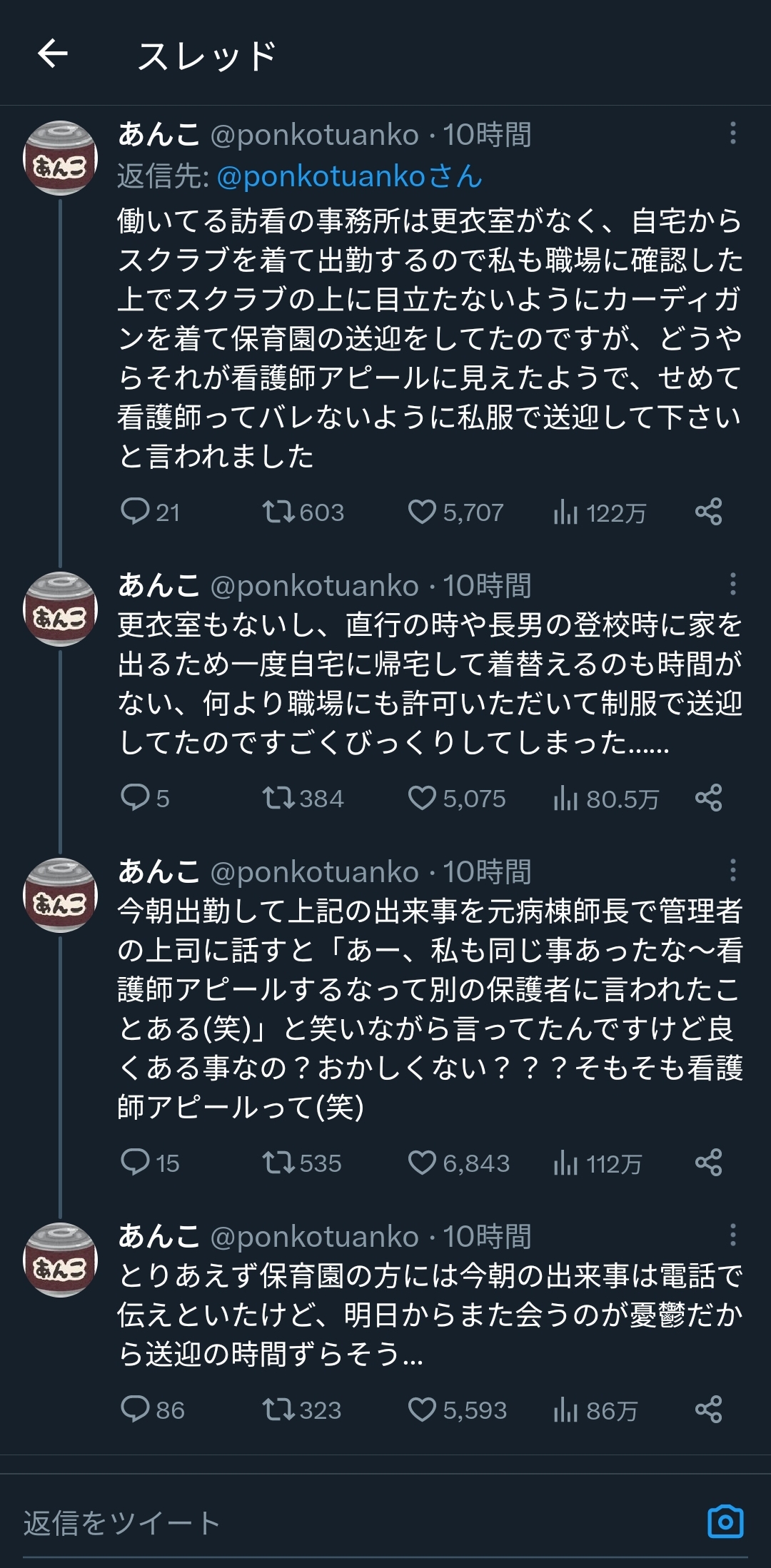 今朝次男氏の保育園でいつも見かけるママさんに「ちょっと良いですか?」と呼び止められ「看護師アピールするのやめてもらっていいですか?看護師になりたくても夢を諦めて普通の会社員になった保護者も多くいると思うので無神経です」と注意されました。