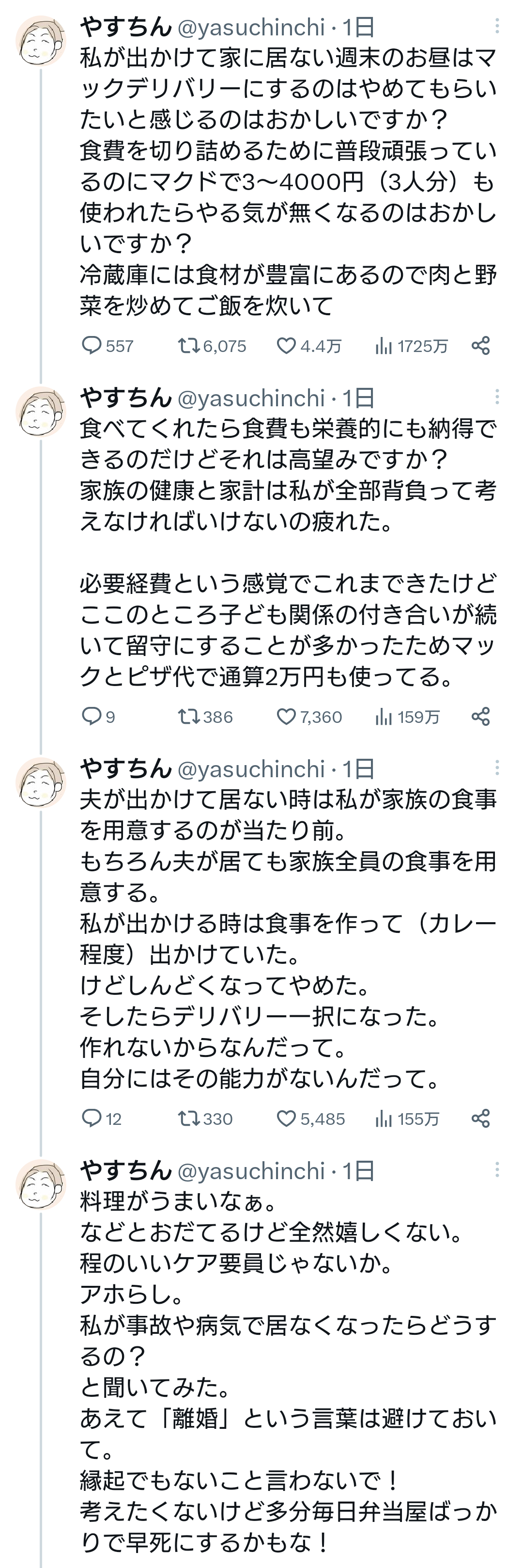 私が出かけて家に居ない週末のお昼はマックデリバリーにするのはやめてもらいたいと感じるのはおかしいですか?
