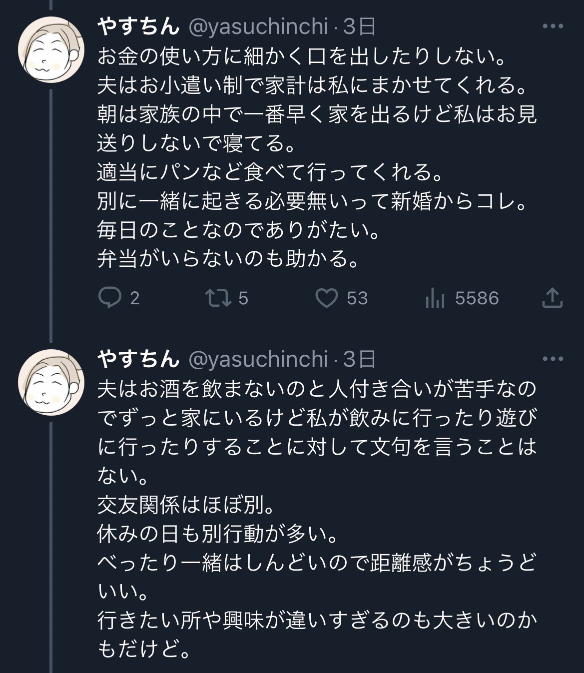 自分は毎日節制しているのに夫が無駄遣いしていると長々と文句言っているまんさん