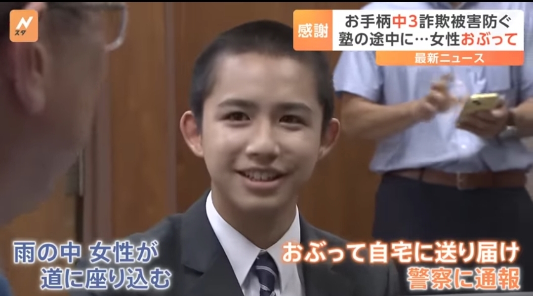 雨の中 女性をおぶって家まで送り届ける オレオレ詐欺を未然に防いだ中学生に神奈川県警が感謝状 https://t.co/Zb8IAs3NOi