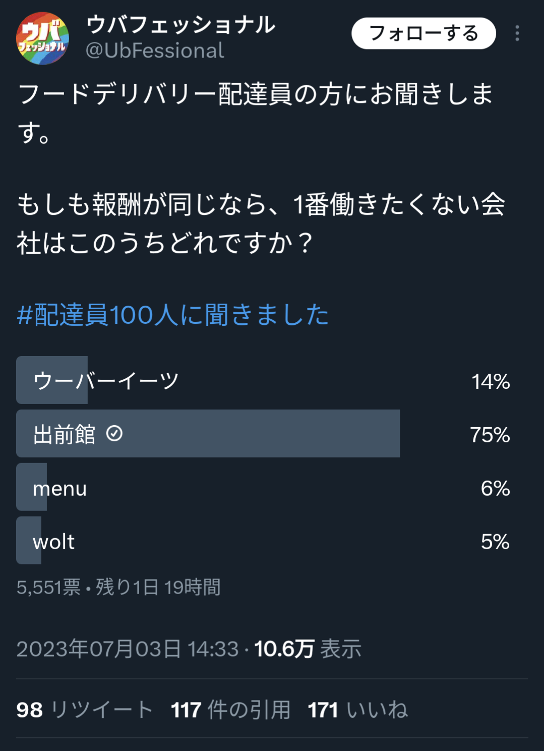 【悲報】「一番働きたくない会社はどこですか?」フードデリバリー配達員「・・・」