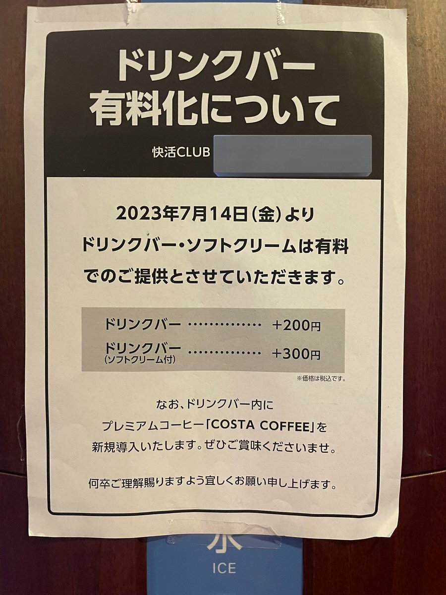 まずはソフトクリーム有料からやと思ってたけど、ドリンクもやるんか