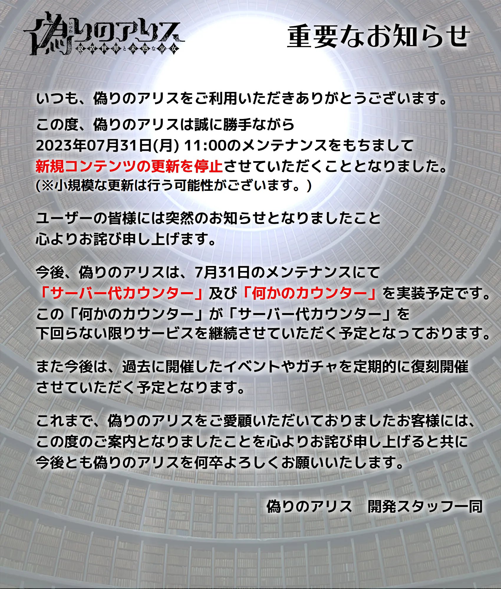課金しないとサービス終了するけど、どうする?を公式がやってくるとは