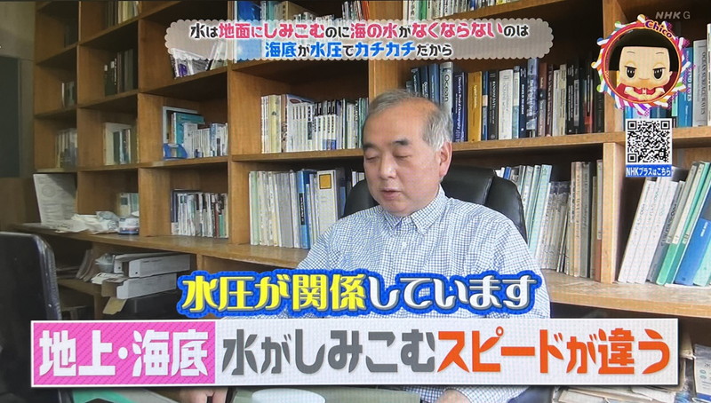 問題となっているのは、「水は地面にしみこむのに、なんで海の水はなくならないの?」という疑問に対する答え。チコちゃんの答えは「海底が水圧でカチカチだから」というもので、大学教授が解説をおこなった。教授は、水圧によって、地上と海底では水が岩石にしみこむスピードが違うと説明。深い海底にある岩石には高い水圧がかかることで、岩石の隙間が圧縮され、水を通しにくくなる、と解説した。