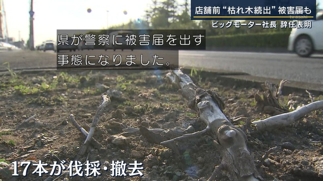 ビッグモーター太田店前の街路樹17本枯れる 群馬県が被害届 | 毎日新聞