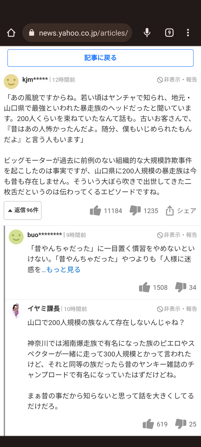 ヤフコメ民「山口県に200人規模の暴走族は今も昔も存在しません。」