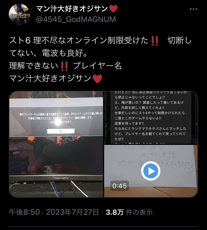 スト6 理不尽なオンライン制限受けた‼️ 切断してない、電波も良好。