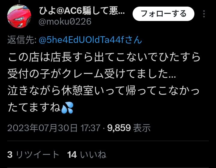 【悲報】ビッグモーター受付嬢さん、客にガン詰めされて号泣 2023/7/31 哲学ニュースnwk 1: 風吹けば名無し 2023/07/31(月) 18:03:23.88 ID:j/sZiVUBM 今井絵理子「フランス旅行は自民党の支出と参加者の自己負担で賄われています。税金は1円足りとも使ってません」 続きを読む Source: 哲学ニュースnwk