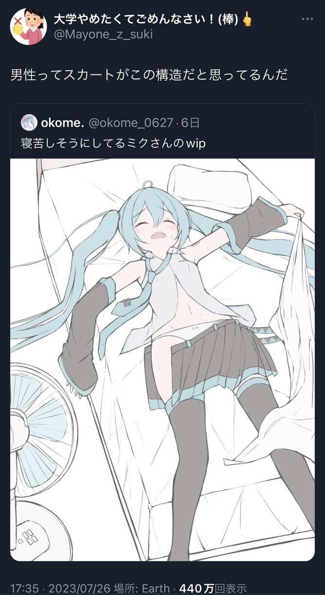 — 大学やめたくてごめんなさい!(棒)🖕 (@Mayone_z_suki) July 26, 2023