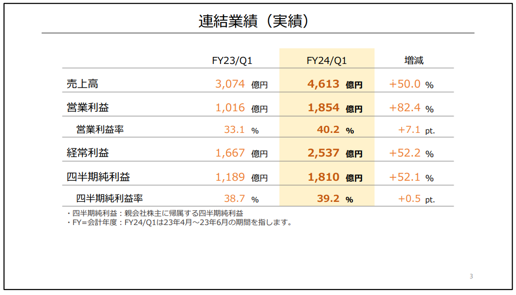 売上⾼は、前年同期⽐50.0%増の4613億円