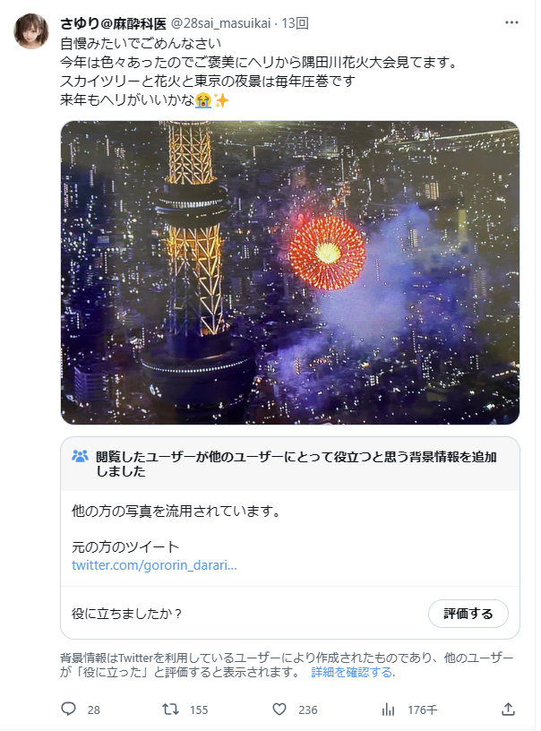 来年もヘリがいいかな pic.twitter.com/1ptCKu51RT— さゆり@麻酔医 (@28sai_masuikai) July 29, 2023