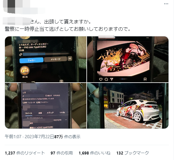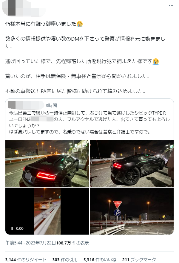 相手は無保険無車検のシビックタイプRのホロライバーの痛車の人と判明しました…