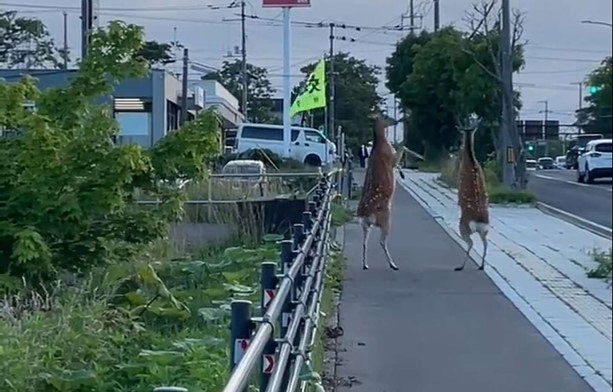 北海道根室振興局が7月26日、Twitter上に投稿した映像が話題になっている。2頭のエゾシカが後ろ脚だけで立ち上がり、前脚を使ってパンチの応酬。専門家によると、頻繁にする行動ではないが、特別珍しい行動ではないという