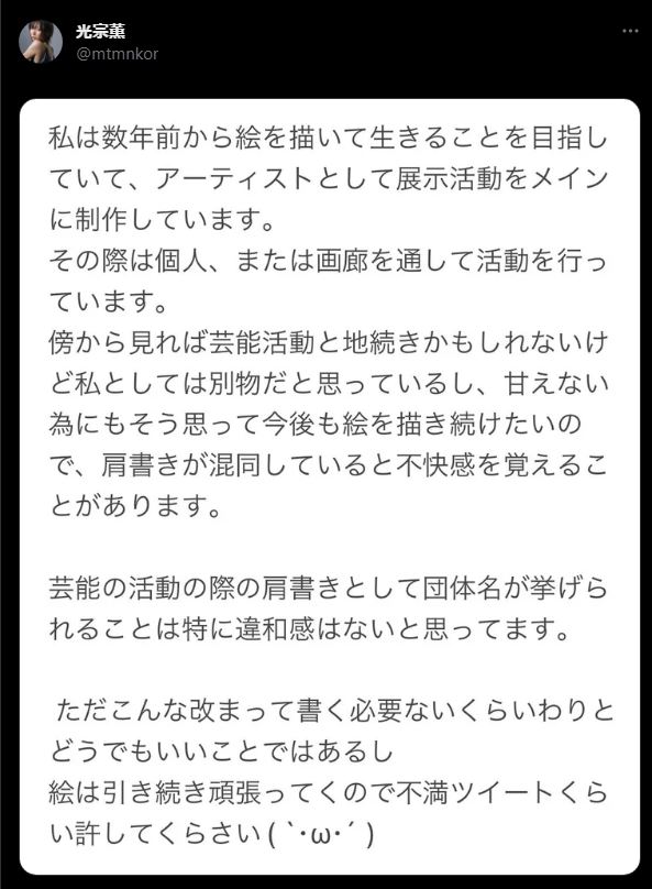 【闇深】元AKB48で現在画家の光宗薫(30歳)「元AKBと紹介するのやめて。不快。私はアーティスト」 2023/8/8 哲学ニュースnwk 1: クトニオバクター(大台ヶ原山) (8級) [ニダ] 2023/08/08(火) 08:04:51.53 ● BE:801948679-2BP(2000) ツイート画像 光宗薫 元AKB48 現在は絵画アーティスト 光宗薫のアート作品 https://www.instagram.com/mtmnkor.art/ 【速報】ビッグモーター副社長・宏一くんのゴルフ動画流出wwwww 続きを読む Source: 哲学ニュースnwk