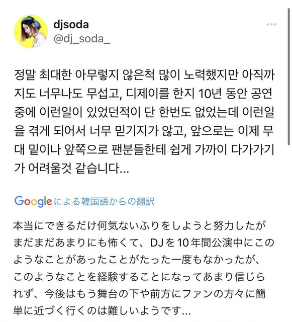 【声明発表】韓国女性DJへの性暴力事件、フェス主催者「断じて許すわけにはいきません」https://t.co/orCHIC6o2W