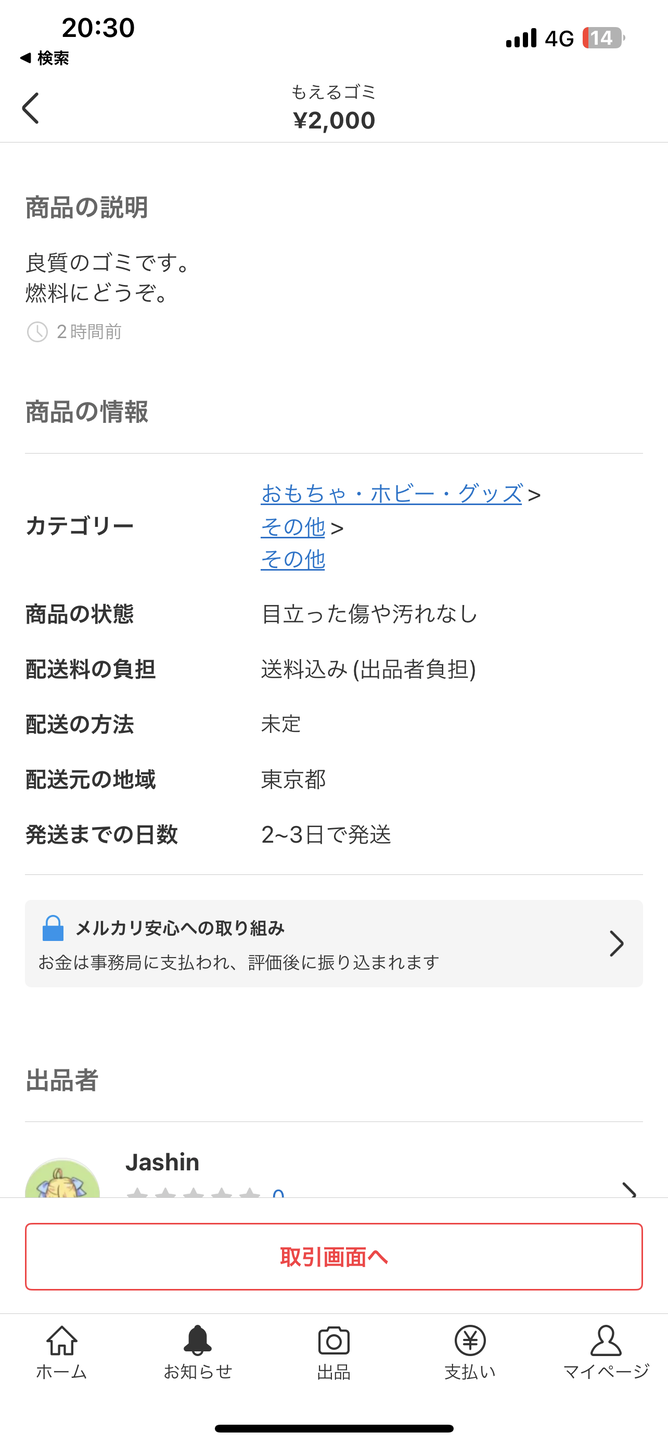 それにならい13日のコミケ終了後、ブースで使用したオブジェクト「バーチャル邪神ちゃん」の下半身を〝もえるゴミ〟と命名し2千円(送料込み)で出品。